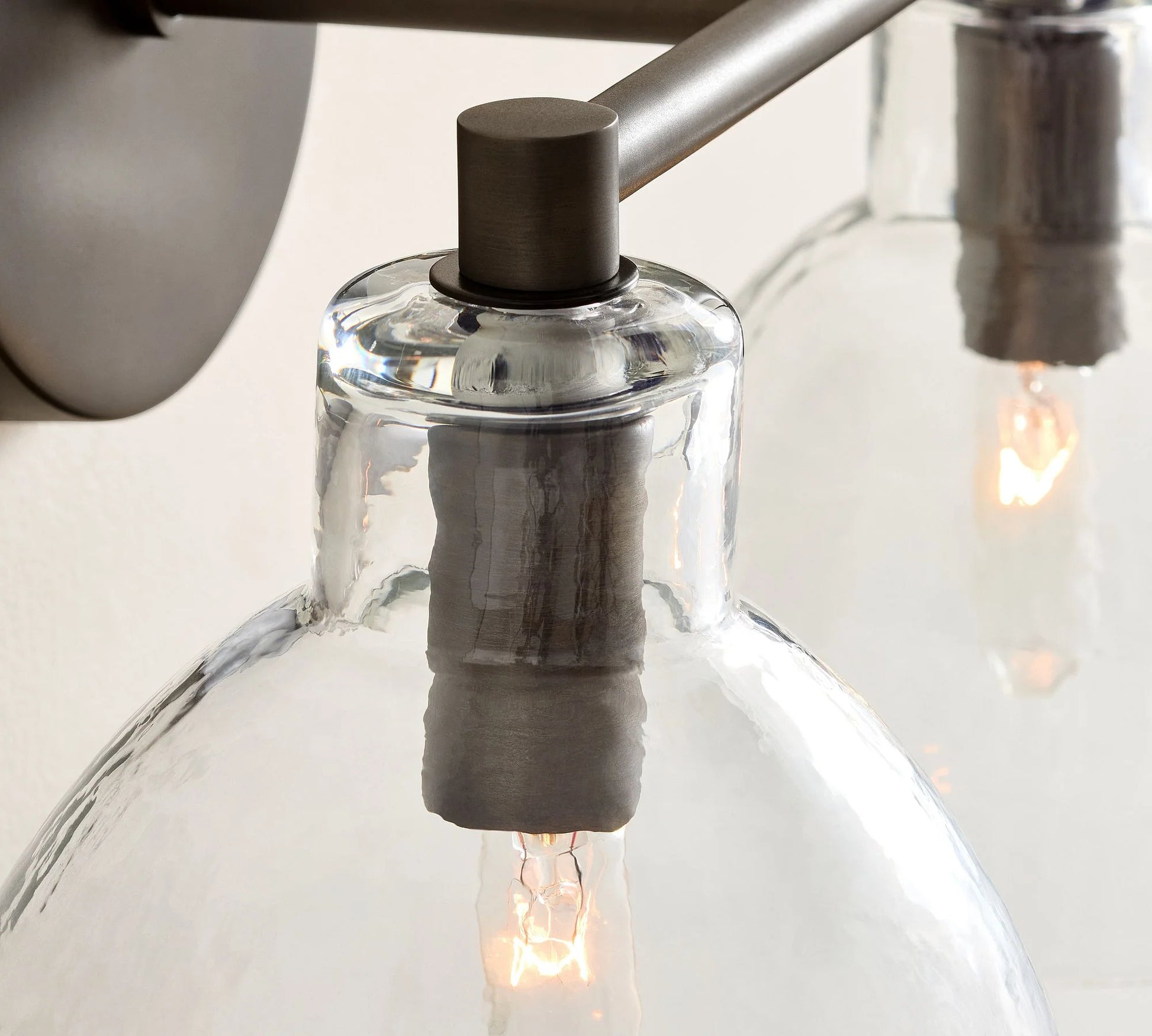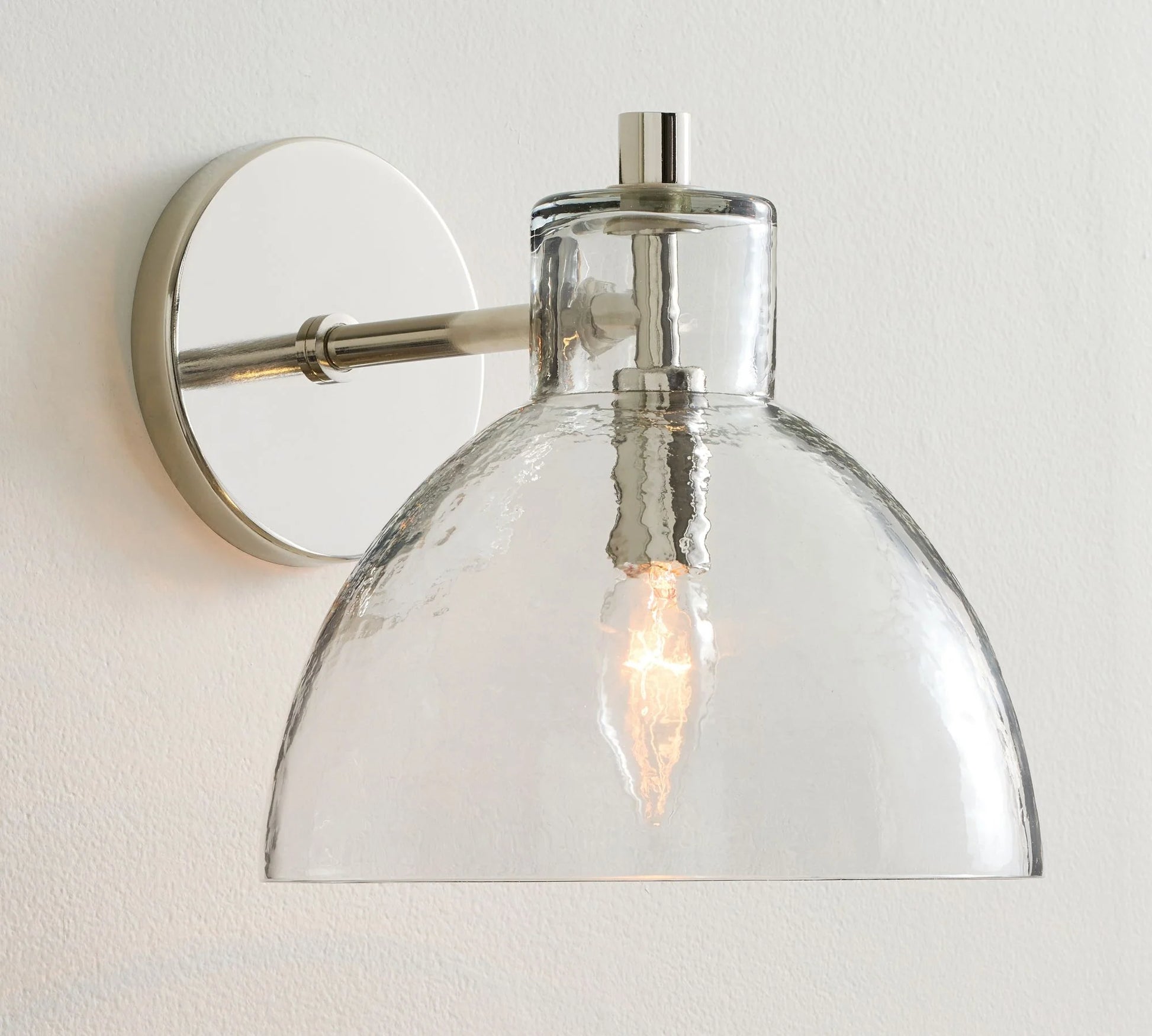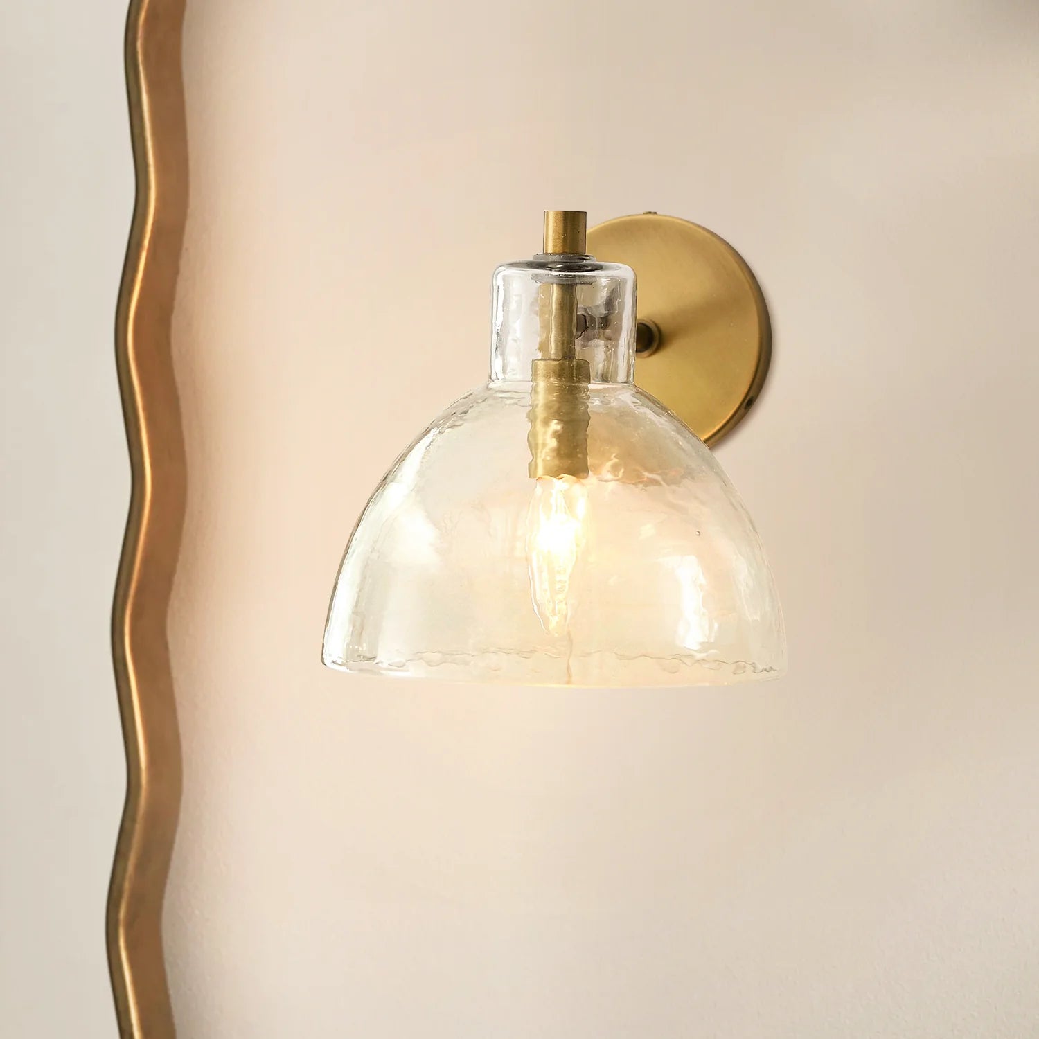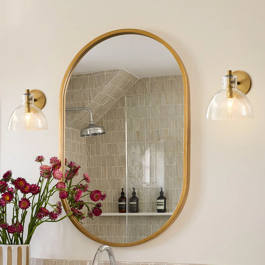 L’applique murale Xeno associe le charme du verre soufflé à la main à une finition en laiton antique, noir ou nickel poli. Son design ouvert en bas assure une lumière claire et chaleureuse, idéale pour les salles de bain, couloirs, escaliers ou chambres.